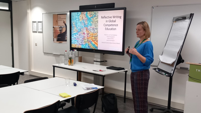 It was an inspiring day with workshops focusing mainly on teacher competencies needed to enable internationalisation within Dutch HBO and MBO study programmes, because ‘without competent teachers, no competent student’. Marlene, Martine and Hilde provided an interactive workshop in which participants learned more about assessing reflection in written assignments on intercultural experiences. During this workshop, they shared knowledge based on research and practical experiences with writing blogs at the Hotel Management School Maastricht.